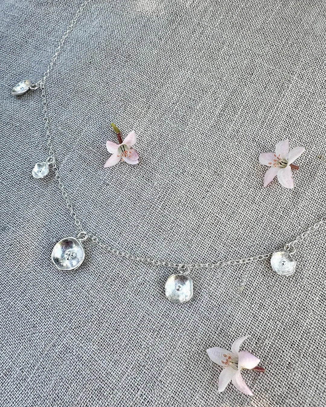 These bridal jewellery pieces are crafted by hand in my leafy garden studio, each inspired by nature, from silver leaf necklaces and botanical pendants, flower earrings to simple bracelets. Designed to be keepsakes for you and your bridesmaids to wear for al lifetime, your jewellery is thoughtfully made from recycled Sterling silver.